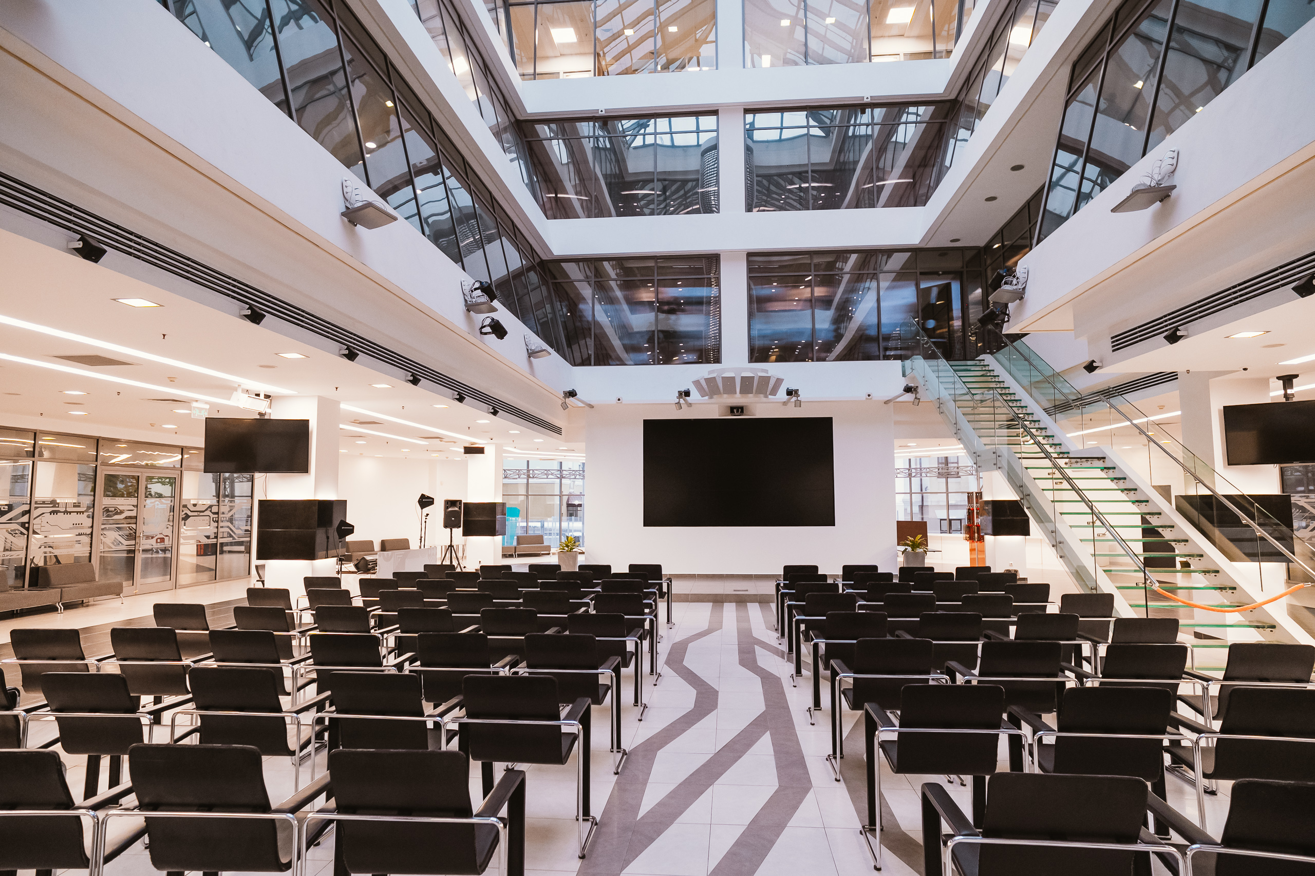 Современные экраны и профессиональный звук обеспечивают чёткую подачу контента и комфортное восприятие для аудитории любого размера.