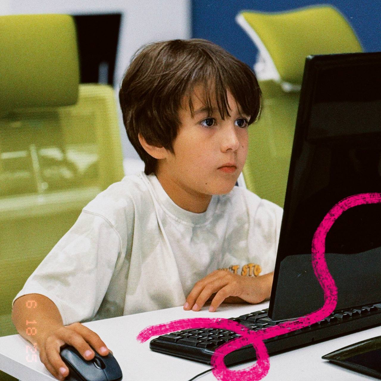 На курсе дети 6–8 лет делают первые уверенные шаги в мире технологий: учатся пользоваться компьютером и клавиатурой, работать с файлами и простыми программами, пробуют рисовать мультфильмы, создавать анимации и делать свои первые мини-проекты. Всё это проходит в игровой форме, так что ребёнок не просто учится, а получает удовольствие от открытий и чувствует себя настоящим маленьким IT-исследователем